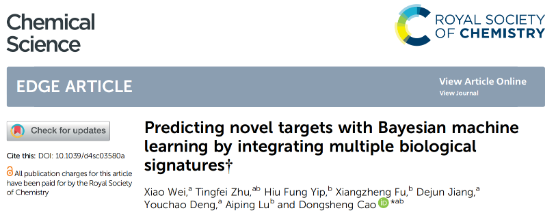 近日,taptap,taptap官方网站,taptap登录入口曹东升教授团队在国际权威期刊《Chemical Science》(中科院一区,NI指数期刊)发表了题为“Predicting novel targets with Bayesian machine learning by i…