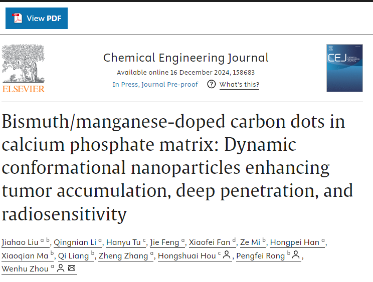 2024年12月,taptap,taptap官方网站,taptap登录入口周文虎教授团队与taptap官方网站湘雅三医院容鹏飞教授团队,taptap官方网站化学化工学院侯红帅教授团队在Chemical Engineering Journal(中科院1区Top期刊,IF=13.…