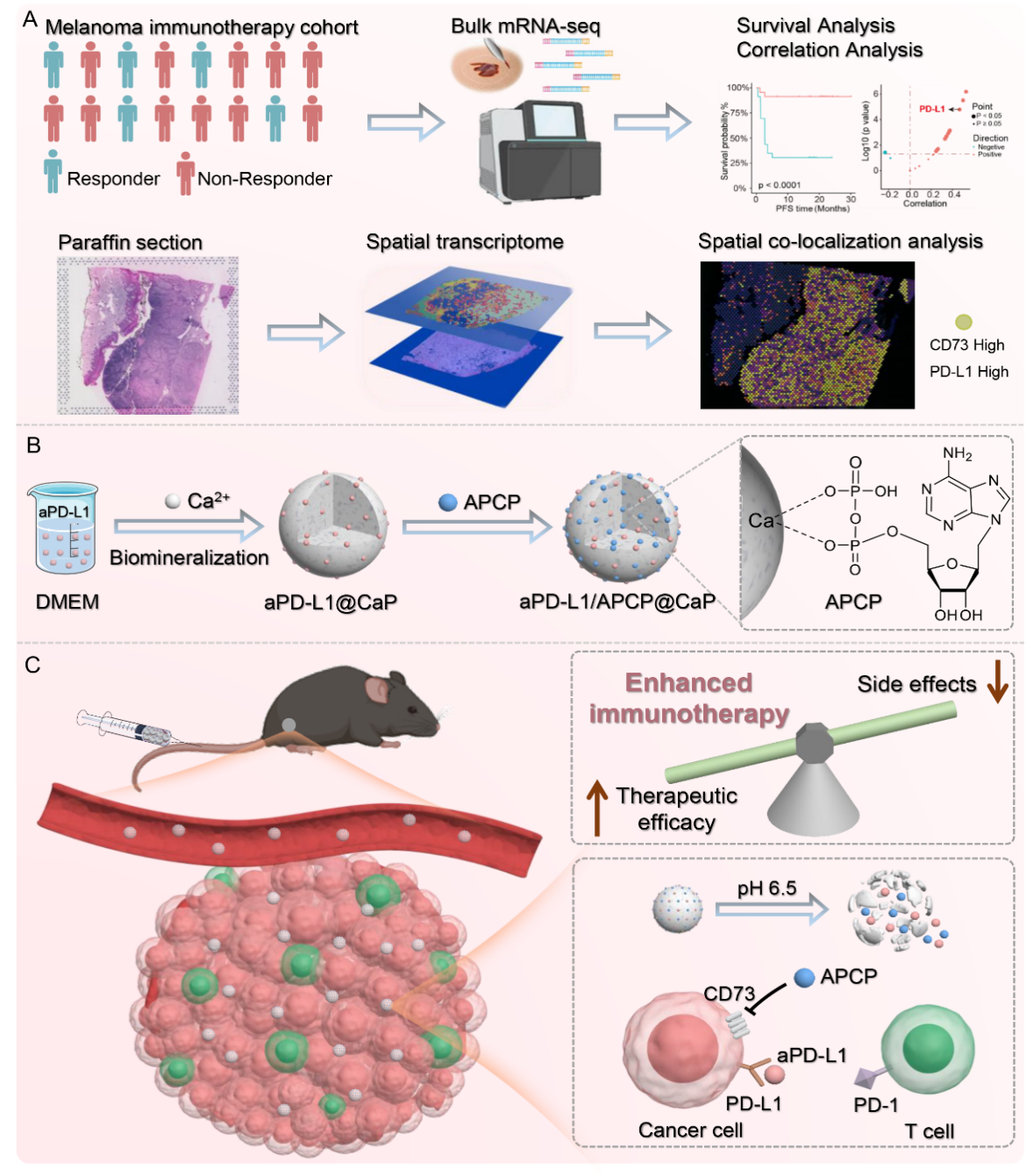 近期,taptap官方网站周文虎教授团队与taptap官方网站湘雅医院陈翔教授团队联合在国际知名期刊《Advanced Science》(IF=14.3)上发表了题为“Co-Delivery of aPD-L1 and CD73 Inhibitor Using Calciu…