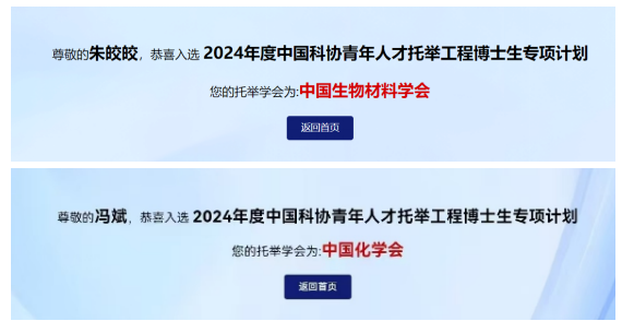 2024年12月30日,中国科协办公厅发布了2024年中国科协青年人才托举工程博士生专项计划首批入选者名单,共3226名同志入选。taptap官方网站药剂学系在读博士研究生朱皎皎、药物化学系在读博士研究…