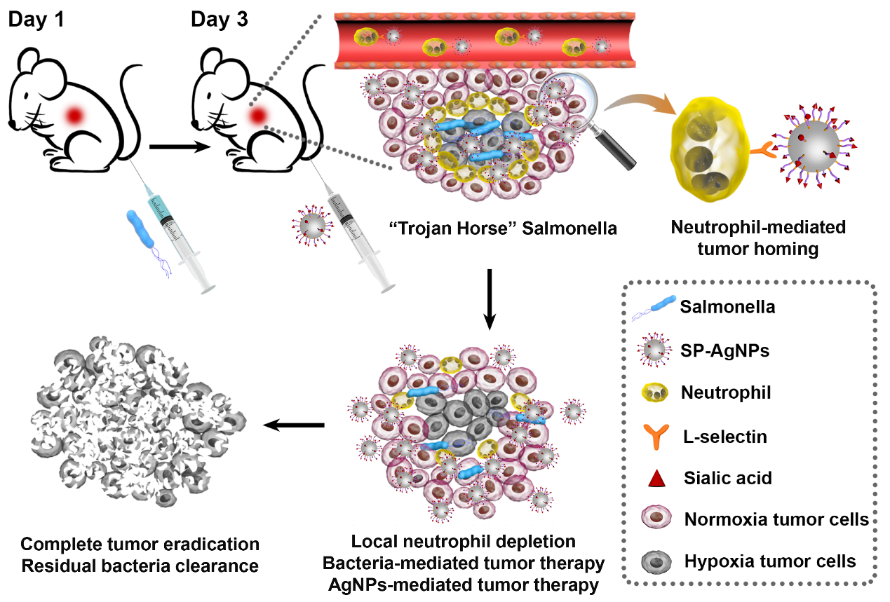 近期,taptap官方网站丁劲松-周文虎教授团队与taptap官方网站湘雅三医院容鹏飞教授团队联合在国际权威期刊《Nano Letters》(IF = 11.238)上发表了题为“‘Trojan Horse’ Salmonella Enabling Tumor…