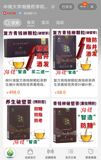建立微信、微博公众号,累计推送20余篇优质原创文章,阅读量及关注人数逐步增加;建立微店、淘宝店铺,推出3款青钱柳产品。