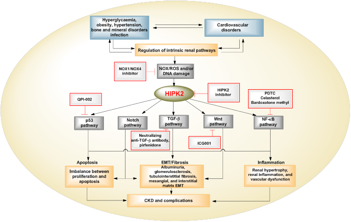 图2 HIPK2在慢性肾病(含糖尿病肾病)中的重要作用