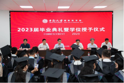毕业生代表郑莉涓同学发表毕业感言。她谨代表2023届全体毕业生感谢母校以及恩师们的辛勤教诲……她表示,将永远不忘自己是中南人,牢记校训、校风、湘雅院训,在各行各业追随光、成为光、发散光,为母校荣誉而奋斗,荣“药”向未来。