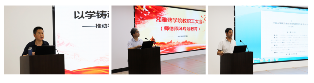 最后,学院党委书记龚涛传达了教育部师德师风建设工作推进暨师德集中学习教育启动部署会议内容和学校关于开展师德集中学习的重要提示,带领全体教师回顾了习近平总书记关于教师群体的论述。会上,龚涛再一次传达了《taptap官方网站教师师德失范行为负面清单及处理办法》,详细阐述了文件提出的要求和不能触碰的纪律红线。他指出,师德师风建设是教师队伍建设的第一标准和首要任务,全院教师要认真学习习近平总书记对师德师风建设的重要指示批示精神,恪守初心,严守行为准则,牢牢守住师德底线,争做“四有”好老师,培养担得起民族复兴大任的时代新人。