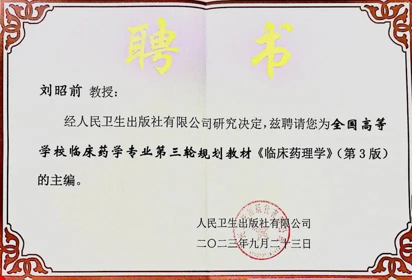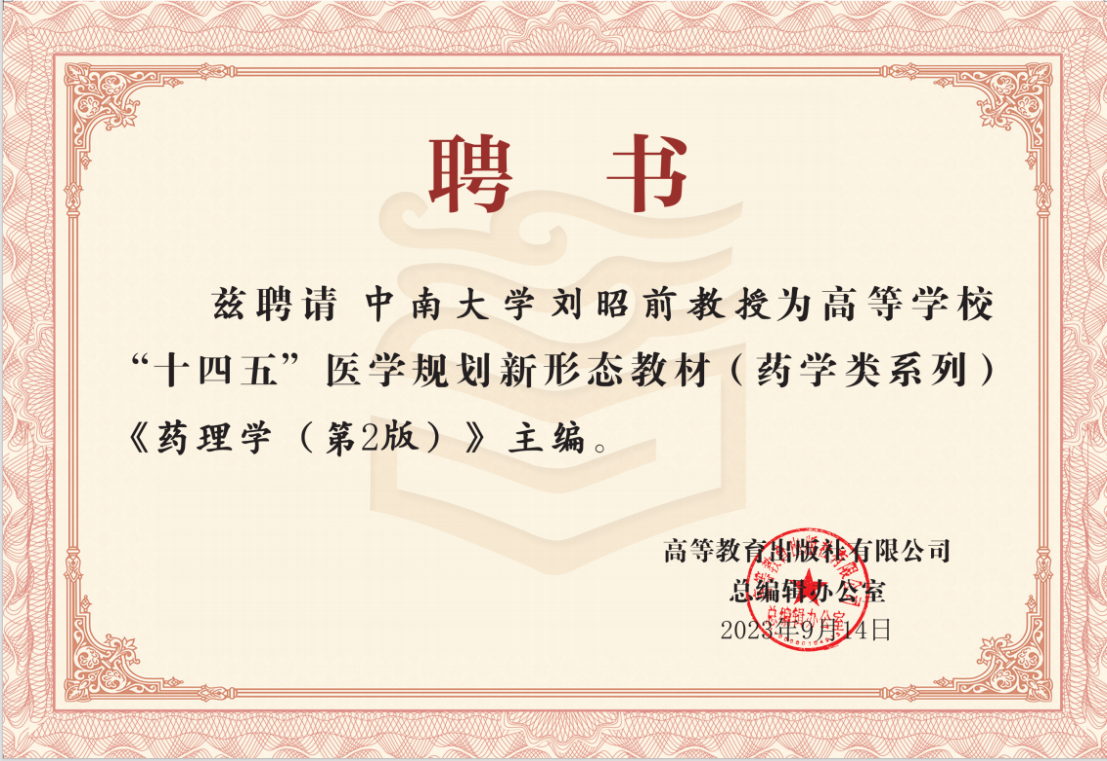 最近,高等教育出版社聘请taptap官方网站刘昭前教授为高等学校“十四五”医学规划新形态教材(药学类系列)《药理学》(第2版)主编。