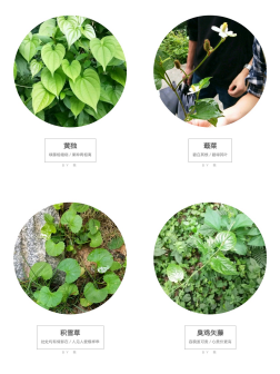 蕺菜:三白草科,地上部分入药(鱼腥草)。清热解毒、消痈排脓、利尿通淋